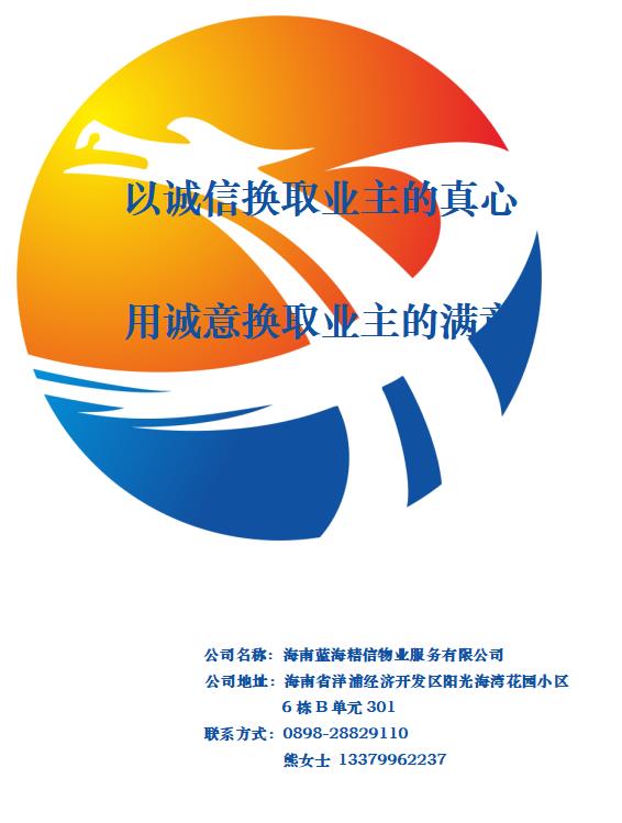 2009年05月20日,海南蓝海精信物业服务有限公司成立于洋浦经济开发区,公司注册资本1000万元,是一家专业化、市场化、规范化、标准化的管理型综合服务物业公司,专业从事各类商品住宅(公寓、别墅)、办公楼宇、商场、学校、医院、工业园区、机关、企事业单位等全委托物业服务与餐饮服务等业务。我公司是海南省物业管理协会会员单位,已通过ISO9001质量管理、OHSAS18001职业健康安全、ISO 14001环境管理、ISO2200食品安全管理体系认证,并收购襄阳市青源物业管理有限公司及襄阳共美物业管理有限公司。